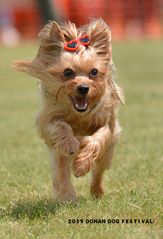 わんちゃんの徒競走です!大型犬・小型犬に分かれて30mを一生懸命走ってもらいます。スタートにワンちゃんがスタンバイ、ゴールに飼い主さんにスタンバイしていただき、一生懸命愛犬を呼んでゴールに導きましょう!タイムの速さで競います。お写真は2018年の様子です。