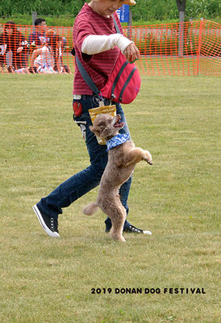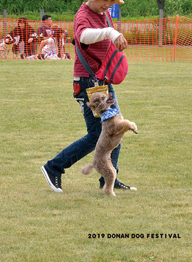 わんちゃんと飼い主さんのコンビ愛が試されます!ワンちゃんの好きなおもちゃ(ボールやディスク等)を飼い主さんが投げ、それを愛犬わんちゃんが追いかけ、キャッチした距離もどってきた回数で点数が決まります。1分間の間に何回持ち帰ってこれるか!点数で競います。